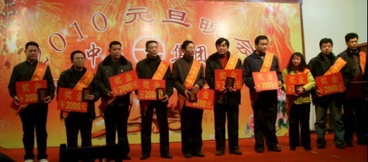 本次年會共分為三部分。第一部分是2009年總結(jié)會,于上午成功召開;第二部分是2009年優(yōu)秀員工頒獎大會,于下午三點隆重舉行,來自集團(tuán)及分公司的十二位優(yōu)秀員工受到表彰;第三部分是2010年元旦晚會,于下午四點開始,在一派喜氣洋洋中,應(yīng)邀嘉賓、集團(tuán)及各分公司領(lǐng)導(dǎo)、集團(tuán)及各分公司員工、員工家屬等共計200余人一起度過了美好而難忘的快樂時光。